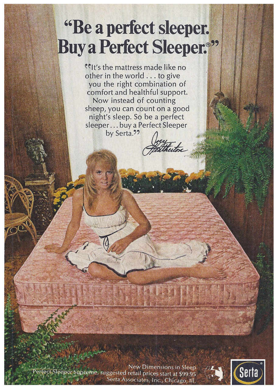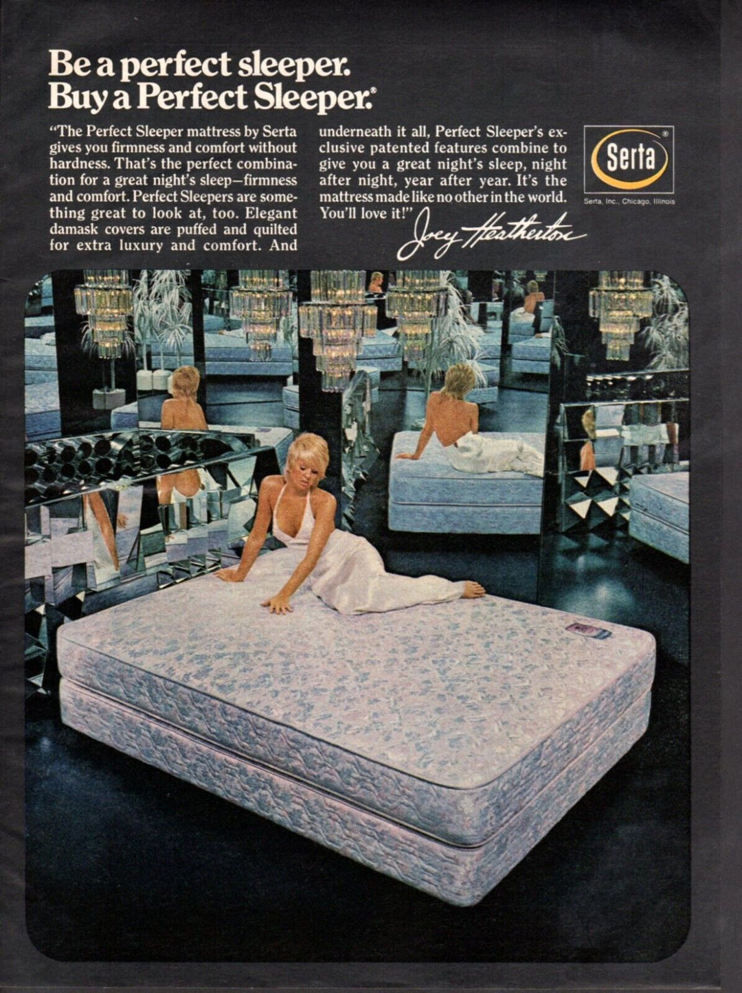 In the 1960s and 1970s, Serta's revenue, business scale and market share all experienced astonishing growth. By the mid-1960s, Serta carried out a large number of advertising campaigns across the country and hired celebrities such as Joey Heatherton as spokespersons. And launched marketing policies such as firm, extra-firm mattresses and soft mattresses, and developed to a total of 39 manufacturing plants in North America, Hawaii and Canada. Serta launched the first Pillow Soft® mattress in 1976, providing double the comfort of the Perfect Sleeper flagship brand. The Pillow Soft concept has been widely copied by other companies and has become an industry benchmark.